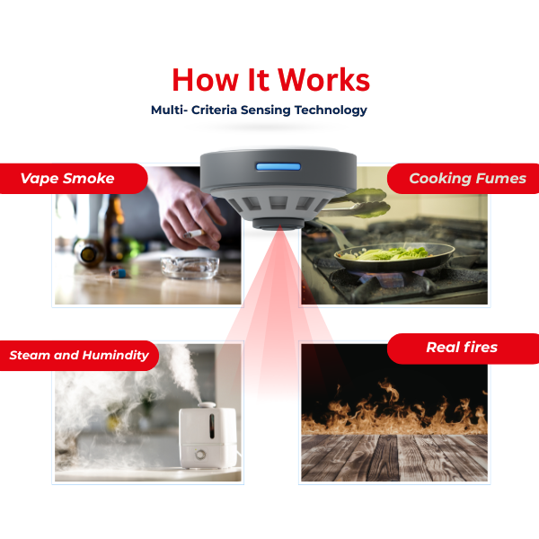 Multi-Criteria Sensing – It combines photoelectric technology with advanced algorithms that process multiple environmental signals—not just smoke presence.