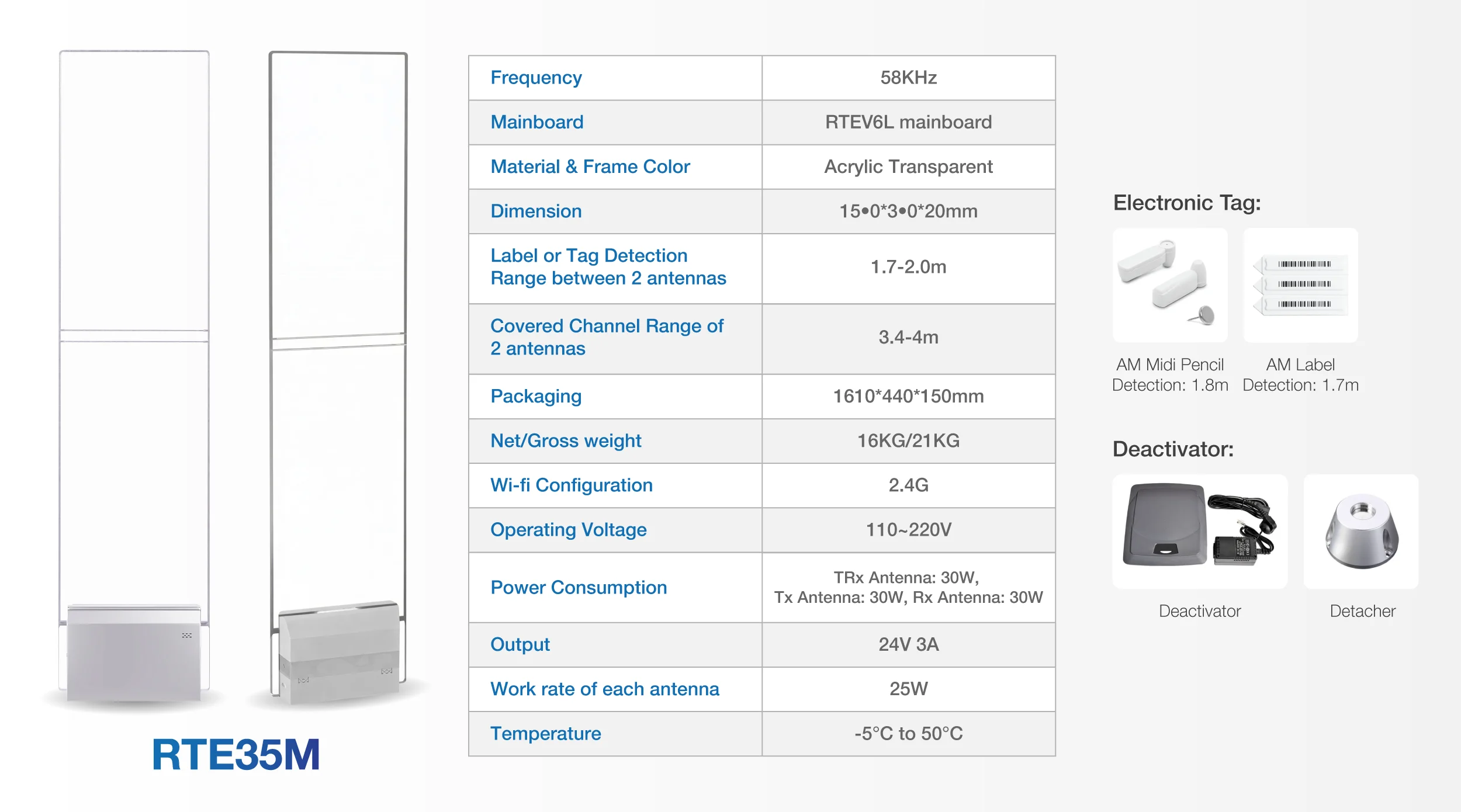 The color-changing AM Rimless Acrylic Antennas are the latest designed and made of side-slot wiring with clean aesthetic appearance suitable for any environment and different brands of stores.